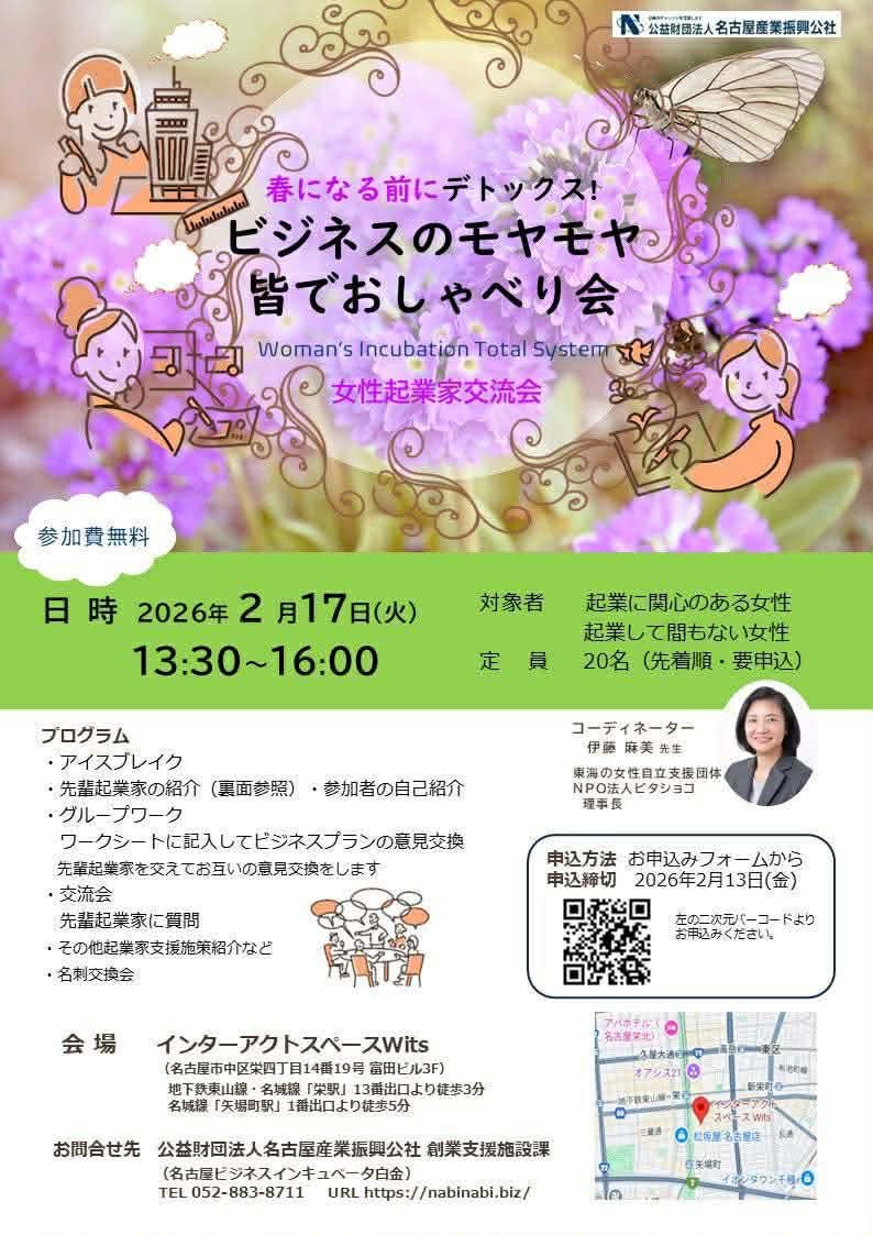 公益財団法人名古屋産業振興公社様のイベントにお招きいただき、これから起業を考えている方、起業して間もない方に向けてお話をさせていただきました。